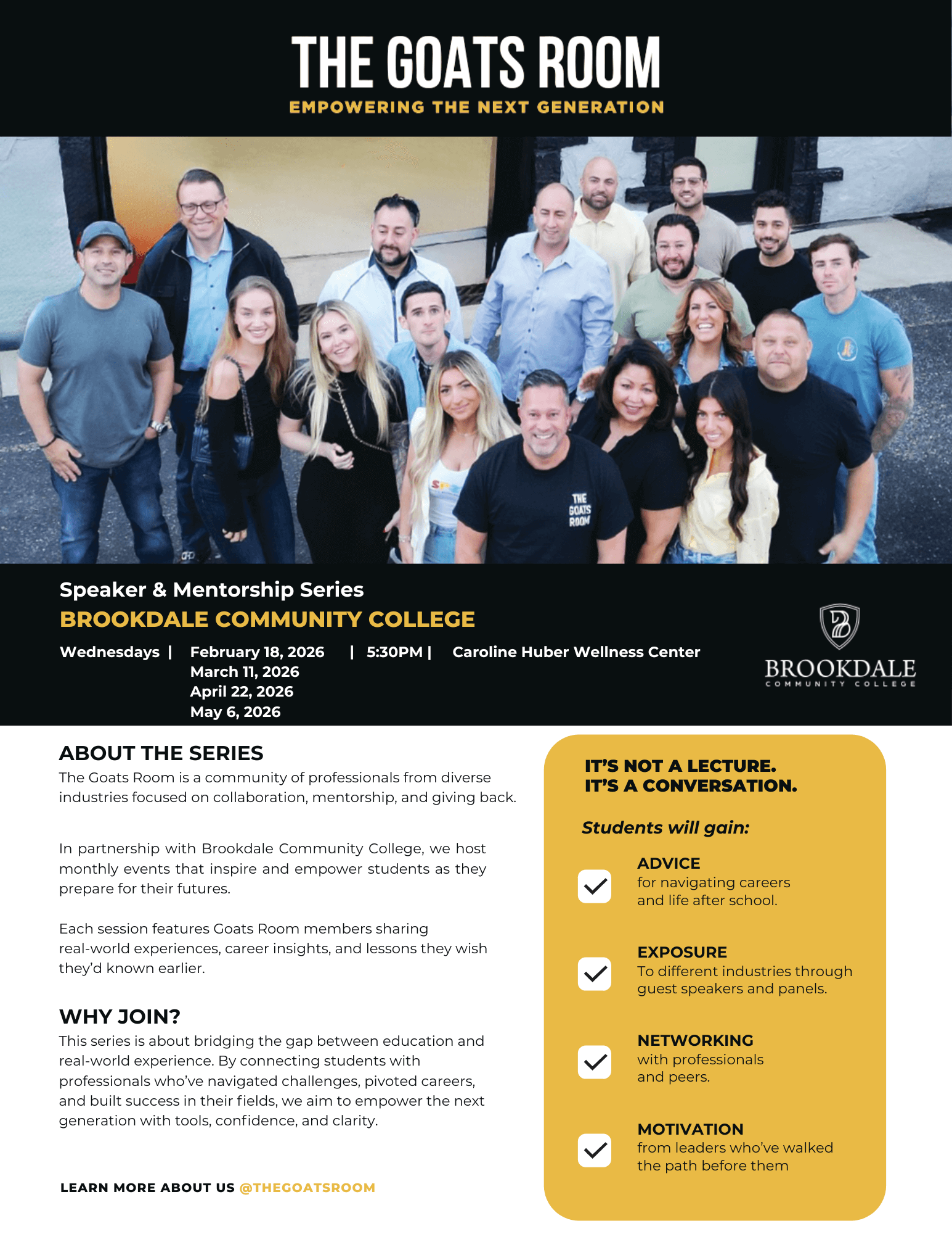 Each session features Goats Room members sharing real-world experiences, career insights, and lessons they wish they’d known earlier.