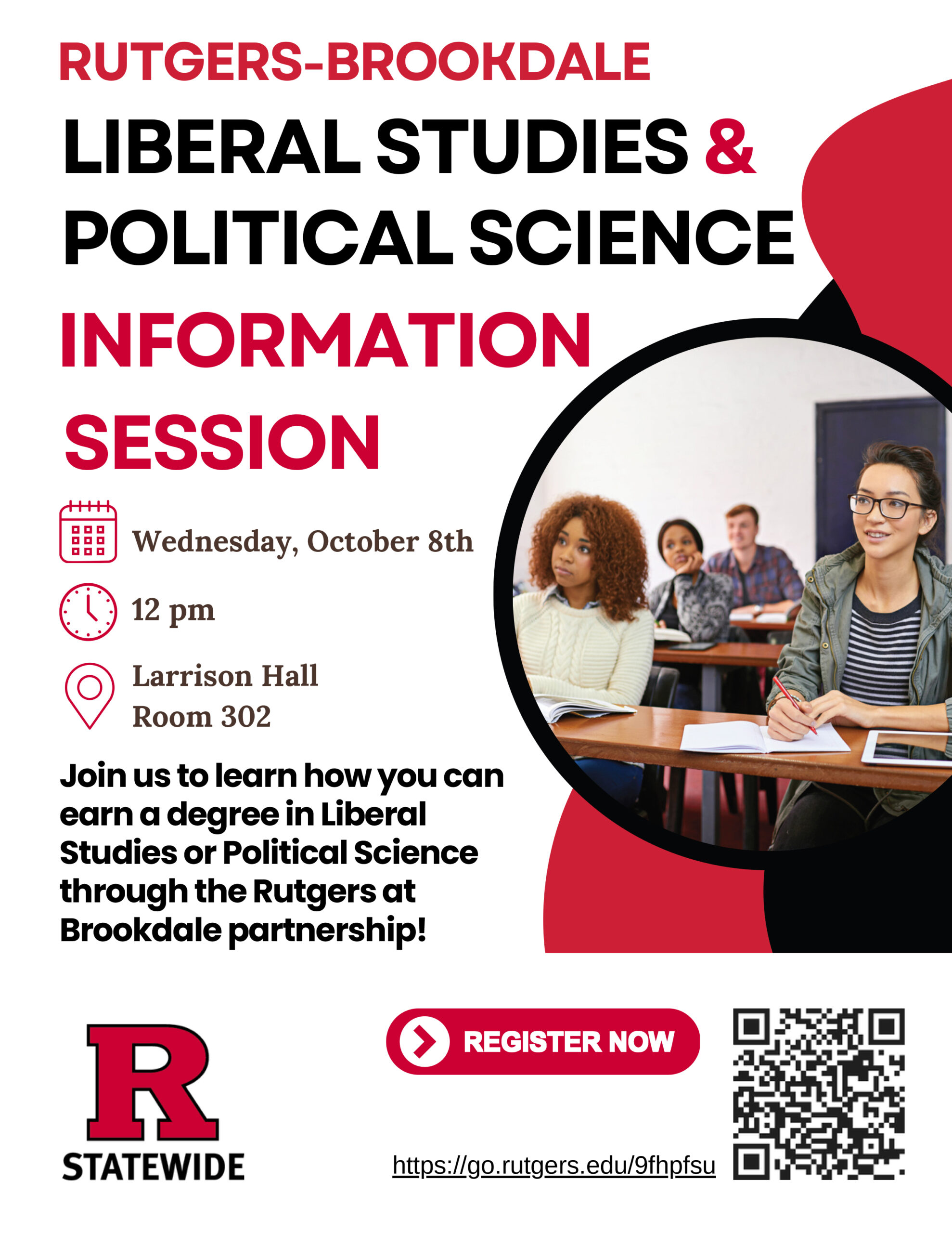 Discover how Rutgers at Brookdale offers a convenient and cost-effective way to earn a Rutgers degree close to home! This session will highlight the Liberal Studies and Political Science programs, clarify transfer guidelines, and explain the application process.